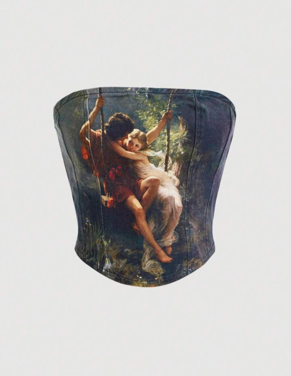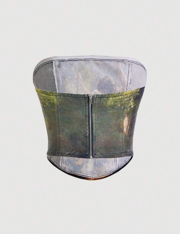 Bustier gabardina estampada con cierre