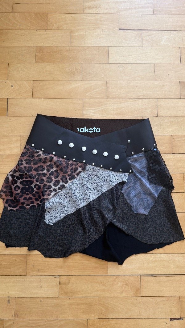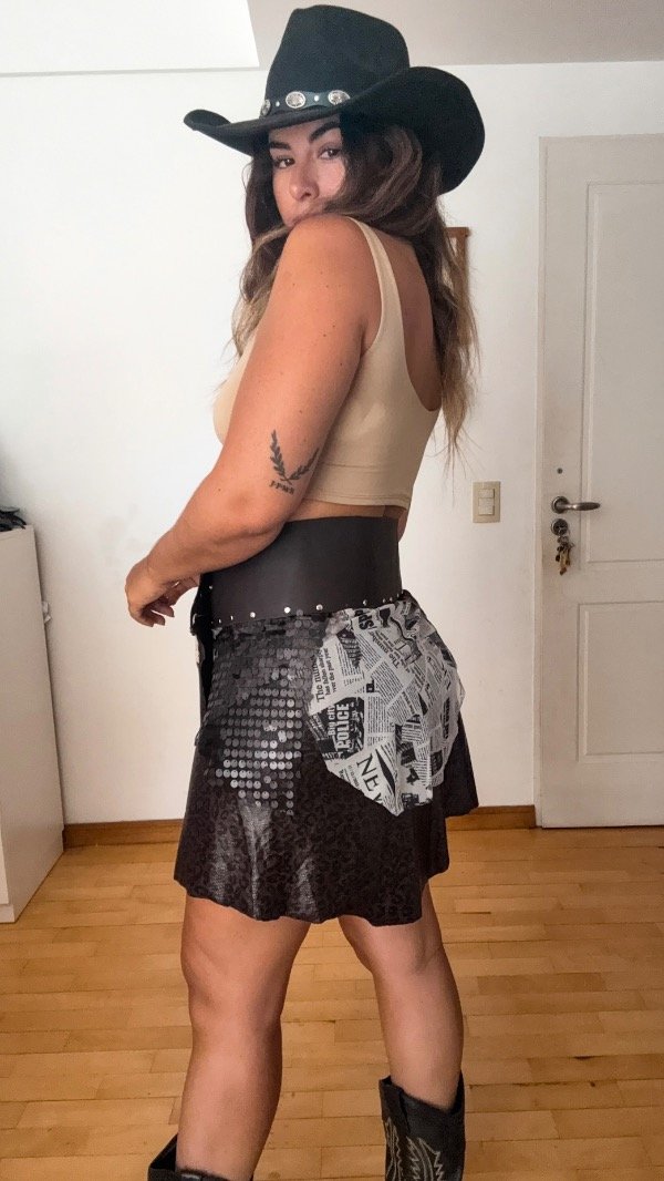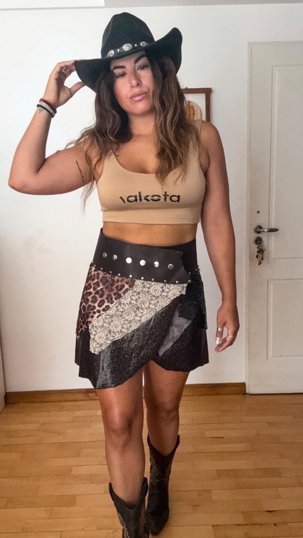 Pollera intervenida de cuero con remaches y botones para poder ajustar según tu medida